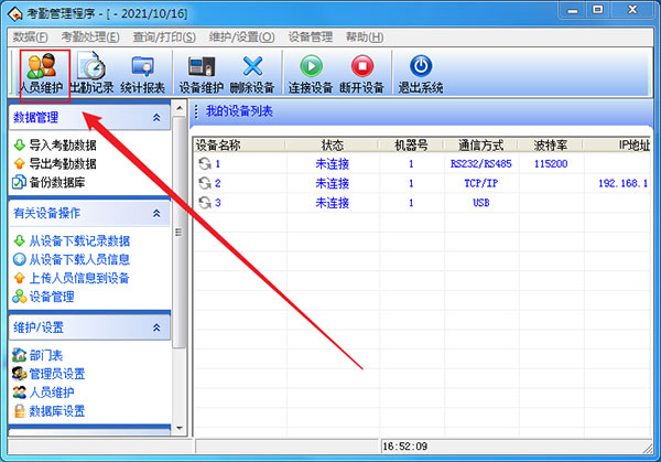 1、点击【人员维护】;