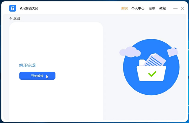 1、解压完成后,点击『开始解锁』按钮进行解锁。