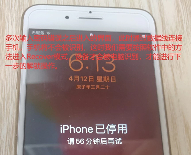 比如:出现iPhone已停用提示,请先将设备进入恢复/开发者模式再按照步骤完成解锁。