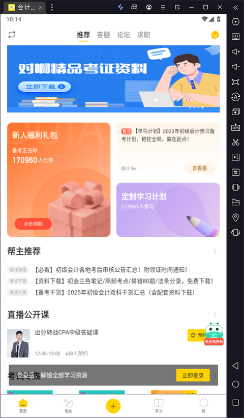 会计帮电脑版是一款基于安卓模拟器运行的高效学习平台,专注于会计考试备考。依托大数据分析,精准预测考题命中率,并通过每日一练等功能直击考点,为用户提供高质量的免费教学资源,助力顺利通过会计和职称考试。