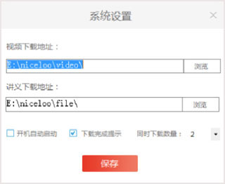 3、第一次登录需要设置视频和讲义的下载地址,点击【保存】;
