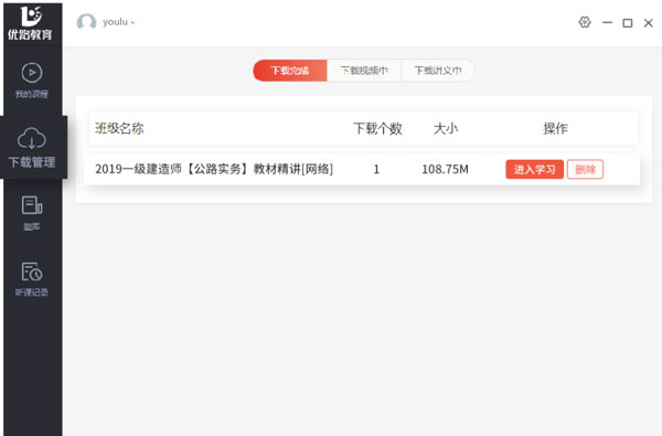 7、左侧【离线课程】中可查看下载完成,下载中课程。