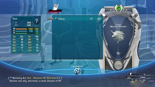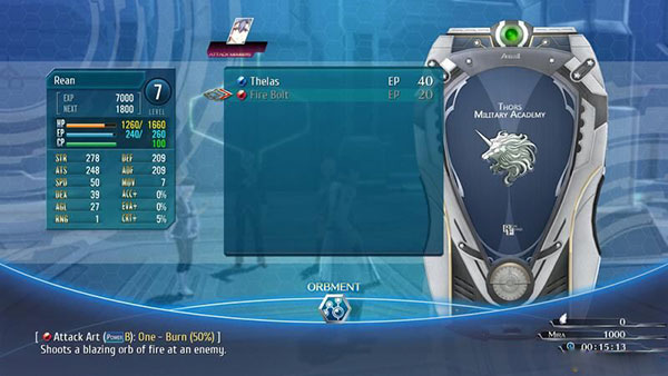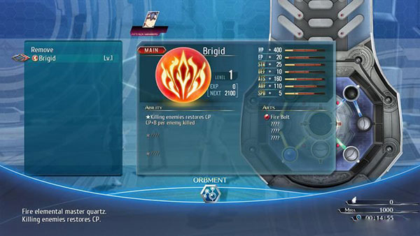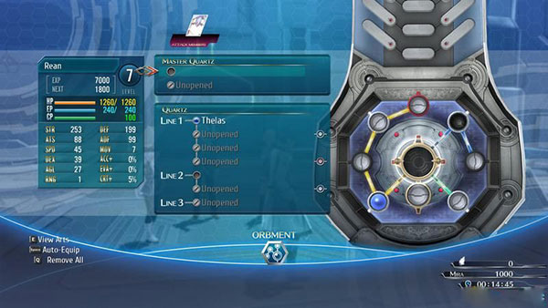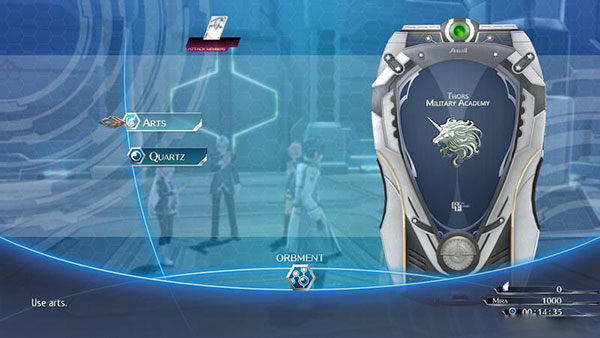 按e后进入菜单可以选择orbment系统,分为arts(魔法)和quartz(魔导器)两部分。