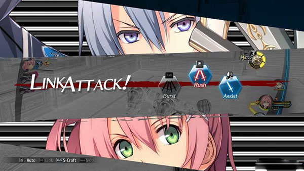 人物之间的联系、能力可以在战斗时引发burst、rush和assist,分别是爆发、突袭和辅助。