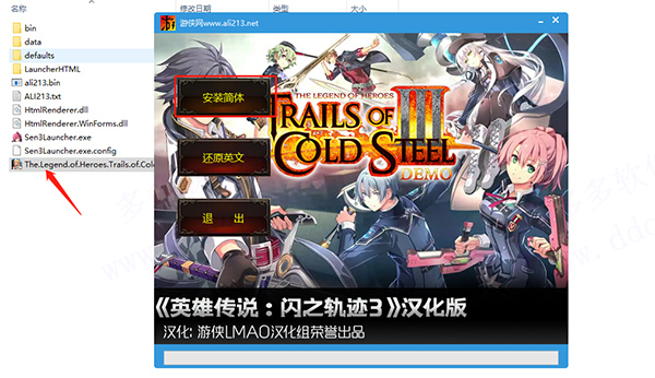 2、双击“The.Legend.of.Heroes.exe”,点击安装简体开始汉化;