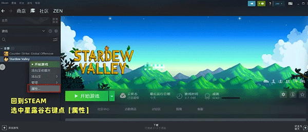 1、回到STEAM游戏库,选中星露谷右键点【属性】