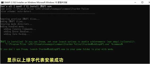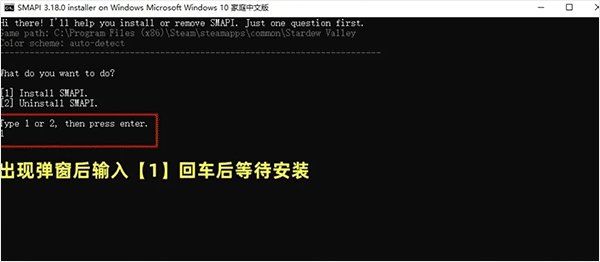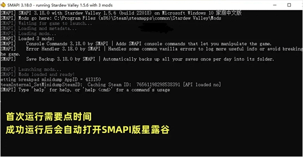 1、通过Steam启动SMAPI,保持SMAPI安装程序窗口打开。(如果您已关闭它,只需再次运行它。无需先卸载。)