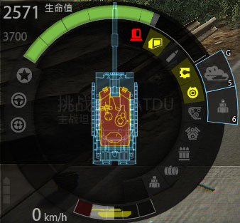 我们可以在仪表盘的最下方,查看目前的隐蔽系数。红色状态下,隐蔽系数为最低,非常容易被敌方点亮。