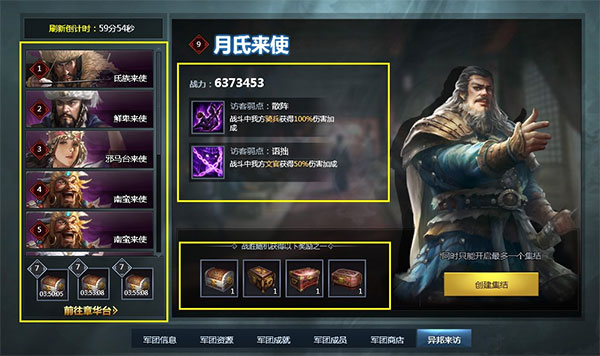每个等级的副本都会随机刷新出不同的特点,根据来使的不同,战力和弱点也相应的有区别。知己知彼,百战不殆嘛,既然掌握了对方的弱点,我们就可以选择相应的英雄去克制他们。这在高等级的军团副本里会很有用。