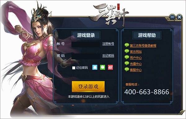 3、玩家可以先注册帐号进行登录,也可使用第三方登录方式,如QQ、微信、微博;