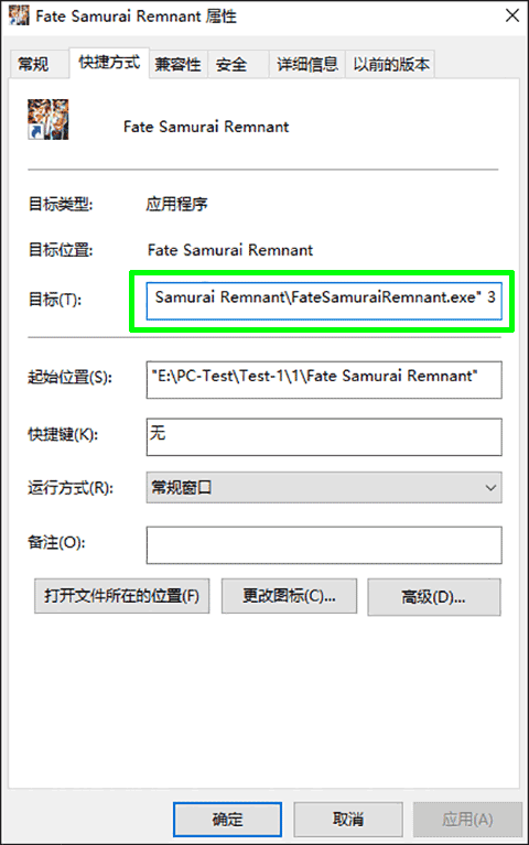创建FateSamuraiRemnant.exe快捷方式,剪切到桌面,然后右击桌面快捷方式属性,在目标后面加个3(3前面有个空格),例如”C:\Games\Fate Samurai Remnant\FateSamuraiRemnant.exe” 3