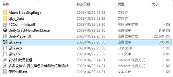 在本站下载且解压好压缩包后,找到并双击压缩包文件夹中的“yjby.exe”就可以运行游戏了。