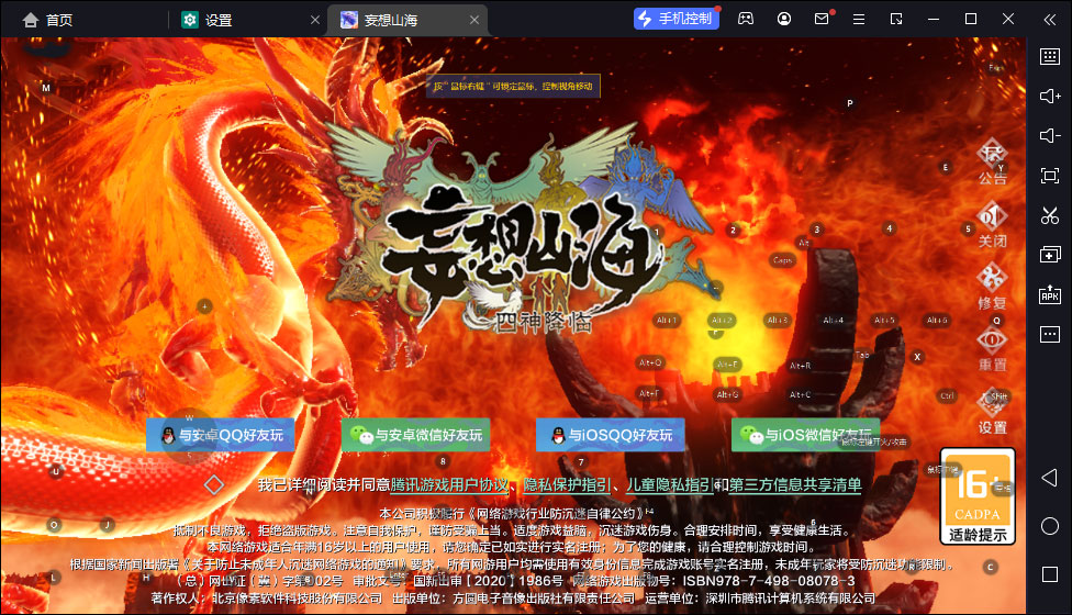 妄想山海手游电脑版是一款基于安卓模拟器上运行的角色扮演类开放式世界游戏,该游戏世界设定在“山海经”的背景故事中,同时游戏完美还原了山海经里如应龙、陆吾、驺吾、夫诸等形态各异的奇珍异兽,力志为玩家还原一个充满了上古异兽、名山大川、弥天云雨的东方异世界。
