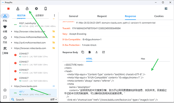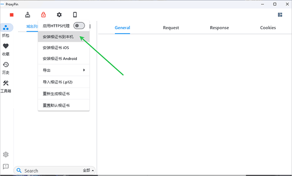 对于HTTPS流量抓包,Proxypin电脑版可以在软件内安装CA证书以确保获取响应数据详情,其安装流程十分简单,只需要用户选择“安装根证书到本地”,按向导操作即可。安装后,无论是HTTP还是HTTPS流量,打开软件即自动开始抓包并获取到响应体的数据详情。另外Proxypin电脑版还自动保存抓包历史记录,并支持HAR格式导出与导入,方便回溯与分析,有需要的用户可以在本站免费下载使用。