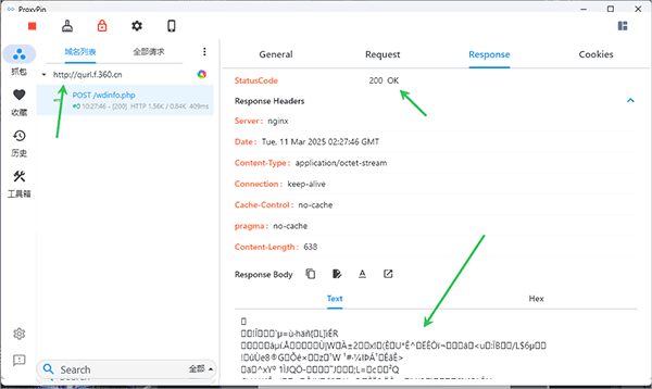 安全抓包与数据导出:针对HTTPS流量,软件提供CA证书安装指导,确保用户能够安全地获取加密响应数据。同时,自动保存抓包历史记录,并支持HAR格式导出,便于后续的数据分析与分享。