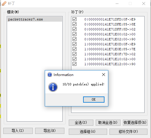 11、关闭x64dbg程序,将原PacketTracer7.exe重命名为PacketTracer7-origin.exe, 并将 PacketTracer7-patched.exe 重命名为 PacketTracer7.exe;