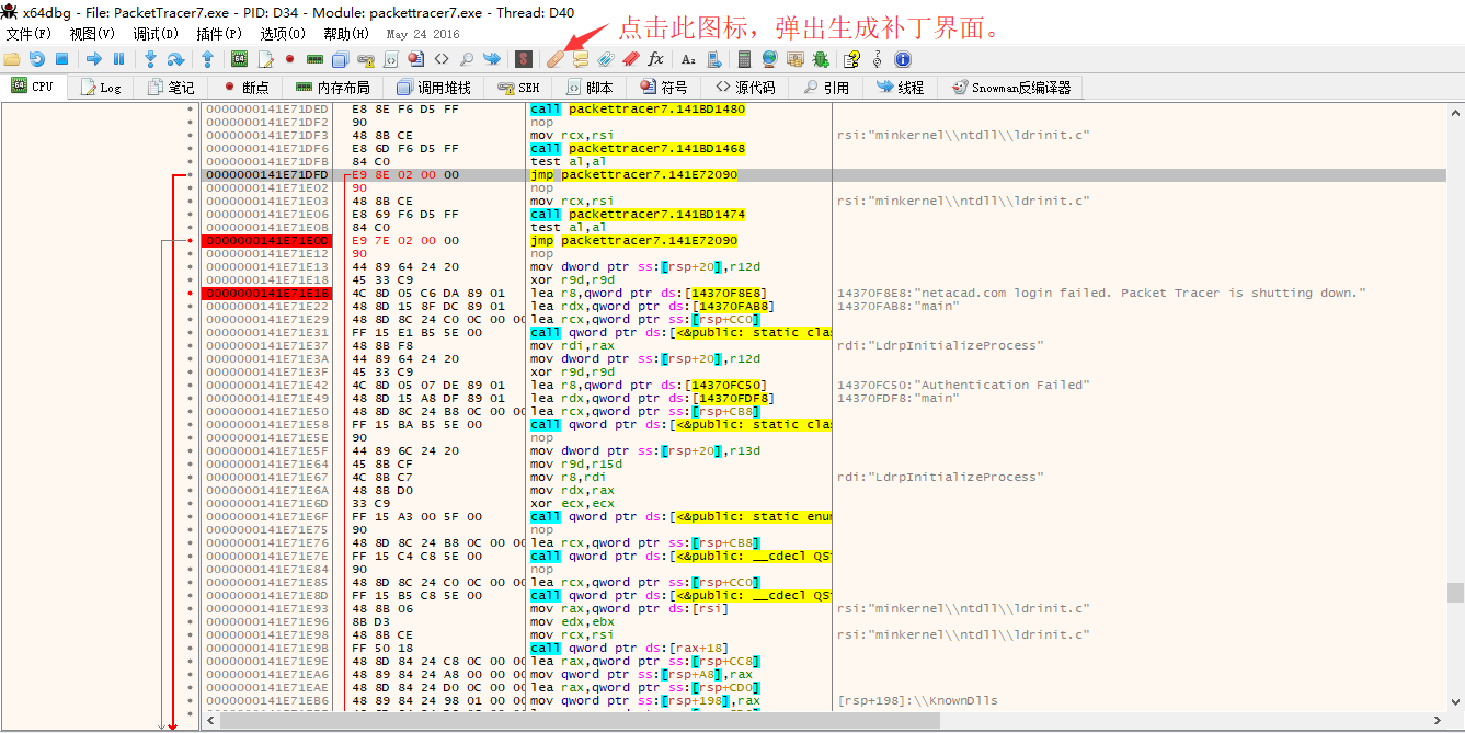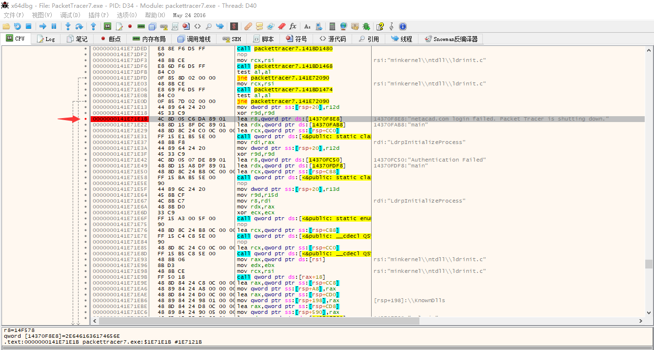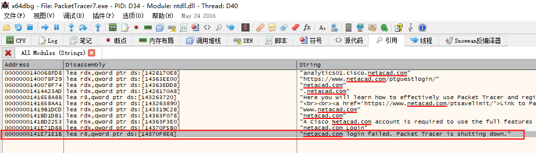 方法:使用 【x64dbg】 去掉 PacketTracer7 的【登陆限制】,达到【免登录】即可使用软件的目的。