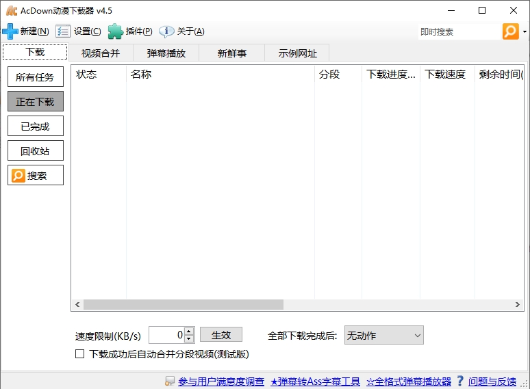 acdown动漫下载器是一款免费、开源、专业的下载器,包含了多个知名视频网站和在线漫画网站的资源,让用户可快速的找到自己喜欢的影片进行下载,而支持的网站有Acfun、哔哩哔哩(Bilibili)、NicoNico、优酷、土豆、新浪、爱漫画、百度贴吧相册、SF互动传媒、吐槽网等等多达百余个网站。acdown下载器还在内置安装了AcPlay弹幕播放器,可以自由匹配、播放来自各个弹幕网站的视频和弹幕,非常方便!需要的朋友可以尝试一下,绝对给力哦!
