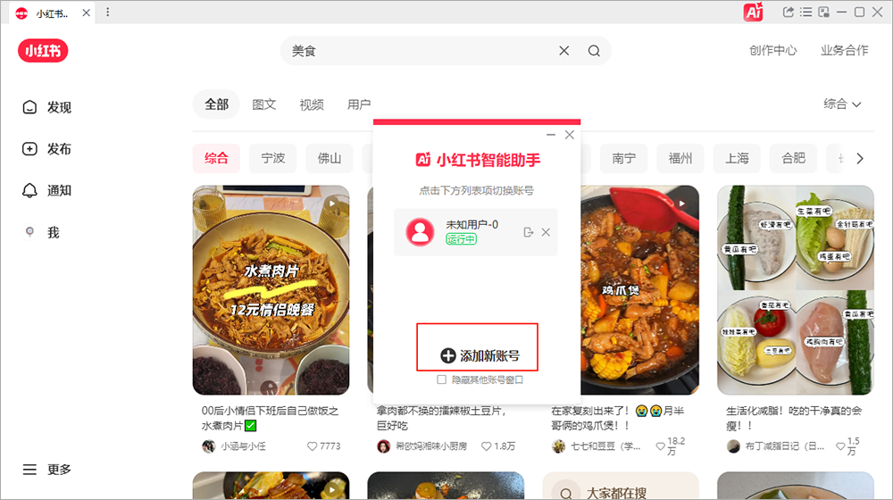 1、本站下载打开小红书智能助手,添加新账号