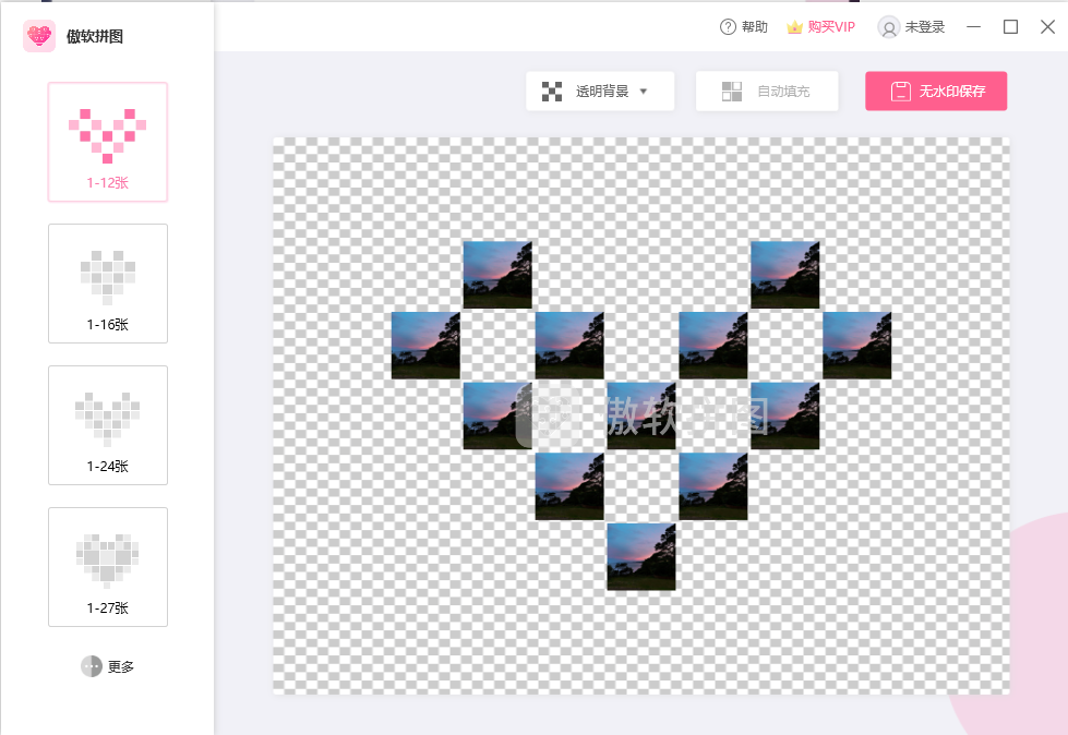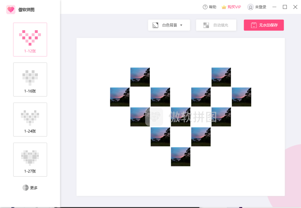 1、简单直观的拼图软件,可以轻松将多张照片拼接为心形效果。
