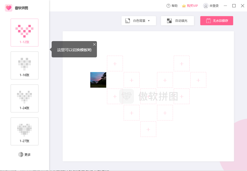 1、打开傲软拼图软件,在界面添加您需要拼图的内容,在左侧选择一个模式,例如设置12张图像,
