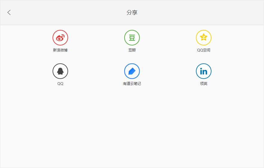 5、点击分享按钮进入软件分享页面,该页面可以将软件分享到微博、豆瓣、QQ等。