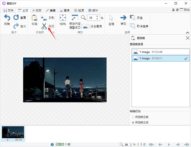 你可以在帧列表选择1个或多个帧,进行剪切、复制、粘贴等操作,被选定的帧会显示在右侧剪贴板