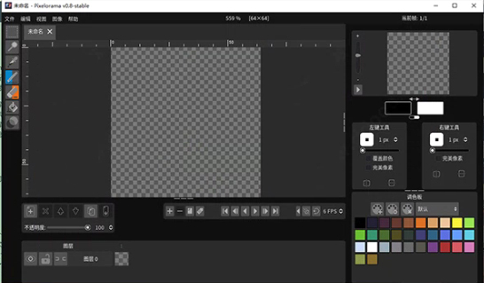 画布位于视图的中间,是您在其上创建艺术品的“图纸”。默认画布是透明的64x64像素