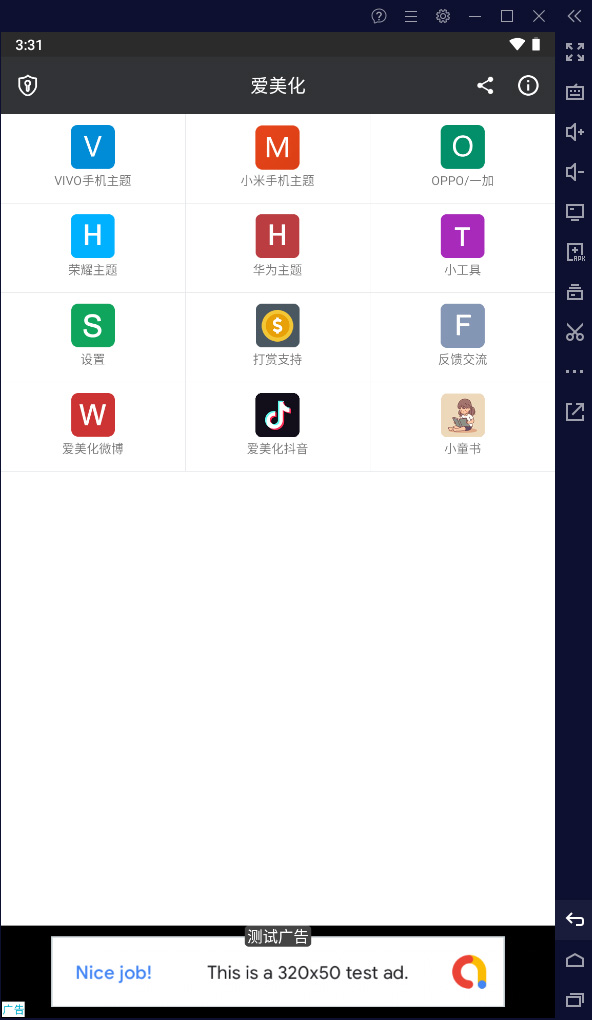 手机上的字体、应用图标、应用主题、状态栏图标等相关主题都是手机厂商们为用户定义好的,但好在安卓手机是可以引入其它主题模板文件来对其预定好的主题进行修改的,于是有很多用户想要按照自己的风格来定义自己手机的主题。那么有哪些软件可以支持让用户创作生成自己的手机主题文件模块呢?今天小编就为大家带来一款由一位开发者大神推出的爱美化app电脑版软件,此软件是在电脑上的安卓模拟器上运行的,这可比在手机上操作更多方便,可以让你在电脑上轻松地引入各种图标、图片资源,来对自己手机上不满意的应用图标进行更换。而且软件中还支持对不同手机品牌的主题进行创作,目前支持华为、vivo、小米、oppo等主流品牌,创作完成后可以一键生成不同手机品牌的主题模板文件保存在电脑本地,然后用户只需要在电脑上生成的这个模板文件传到手机上的主题文件位置下进行替换即可,这可比在手机来回翻找文件方便多了,有需要的用户可以在本站免费下载使用。