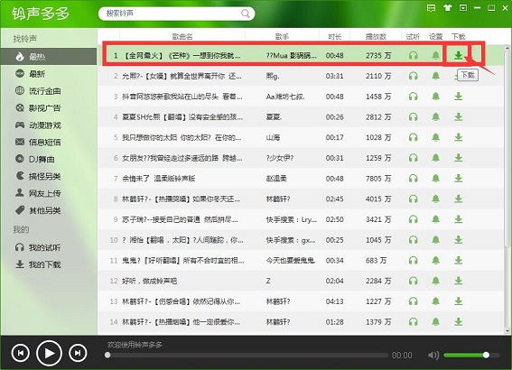 6、热播电视剧插曲的铃声,火热流行单曲的铃声,最搞怪的耍宝铃声,应有尽有;
