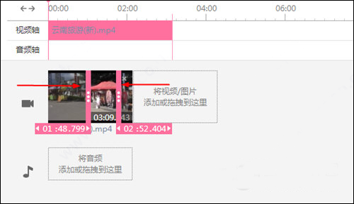 2、接着将素材栏里的的视频拖放到下方的视频轴中。