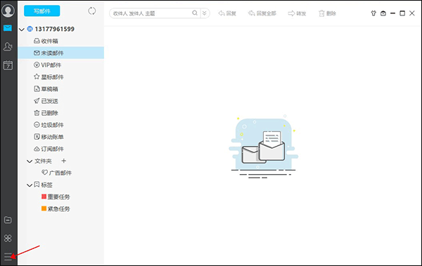 1、进入139邮箱电脑客户端后点击左下角的三条横杠。