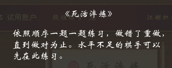 8、依照顺序一题一题练习,做错了重做,直到做对为止。水平不足的棋手可以先在此练习