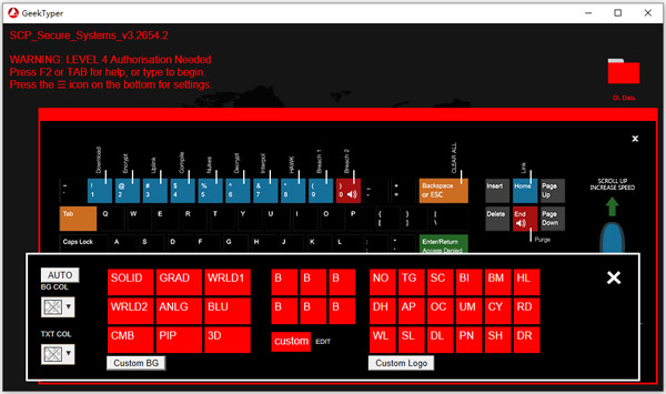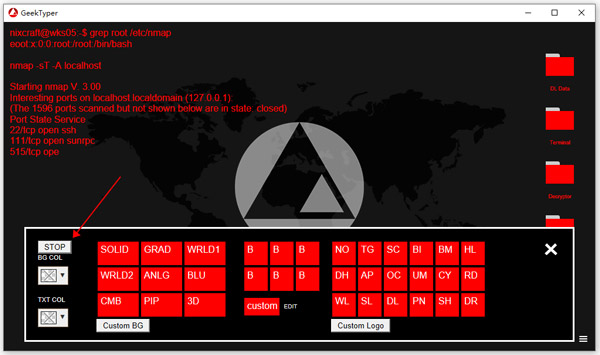 5、GeekTyper 的每个主题并非单纯的改改配色,每套主题都有一定来源参考,当用户选择all scripts时,每个主题的 logo 就会显示在运行窗口中间。