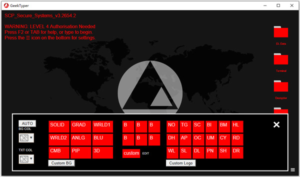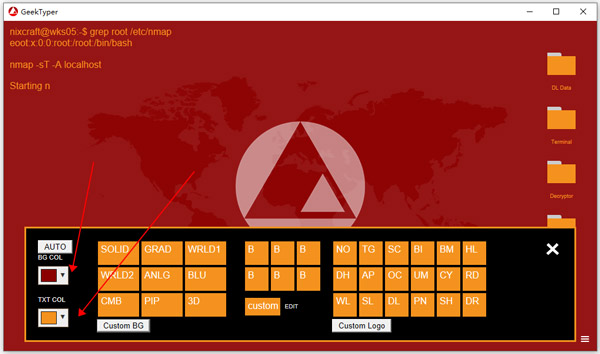 3、自由配比:GeekTyper 能模拟多种不同风格的界面,字体和可自由搭配的背景颜色及字体颜色。