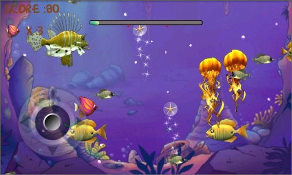 第七关(Crazy Jellies 疯狂的海蜇:来份花生酱海蜇三明治怎么样?):不断涌上去的海蜇,被蜇了就会眩晕几秒钟(对别的鱼类也一样)。金鲤鱼使你立刻升级。