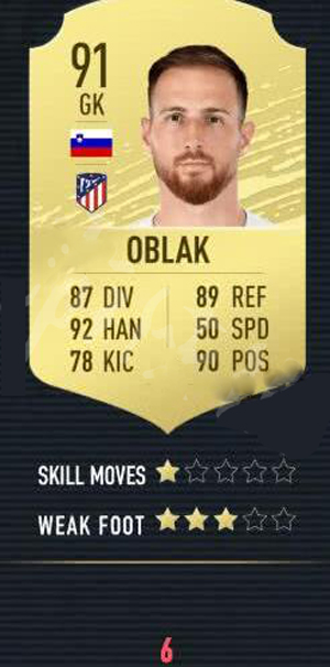 能力值91,排名最高的门将,不得不说马竞一直盛产门将,无论是库尔图瓦还是德赫亚,都曾担任过马竞的门将,也是作为过去西甲在皇马、巴萨双雄冲击下,马竞可以抗衡量大巨头的最大本钱。