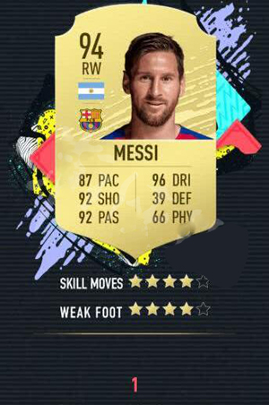 能力值94,随着C罗离开皇马影响力下降,加上在尤文的表现没有过多的高光点,梅西从FIFA16之后再次独霸能力榜第一,告别了去年的双雄会,属性上也进行了微调,但是总体而言就一个字:强!