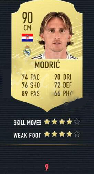 能力值90,2018年夏天,帮助克罗地亚获得了世界杯亚军,这为他提供了很多加成,毕竟2018-2019赛季他与皇马队的表现可以称作是灾难性的,这个赛季齐达内回归之后他还有证明自己的机会。