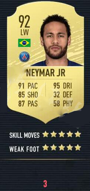 能力值92,一直以来的世界第三,但是去年的表现排在第三已经有些勉强了,但是实力依旧在,前10永远有内马尔的一席之地,出色的盘带让内马尔随时可以禁区内辗转腾挪,吓出对方门将一身冷汗。