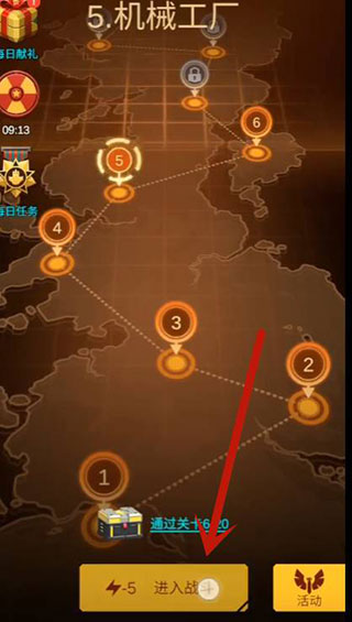 1、玩家在游戏第五关的界面中,点击下方的进入战斗,开始第五关的游戏内容。