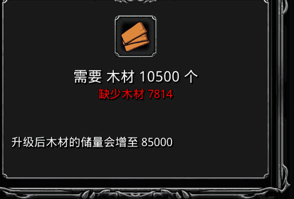 木材——提升仓库容量,酒馆或工坊的等级、少量用于工坊生产,当前等级越高则需求量越大