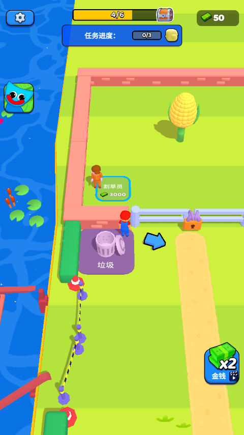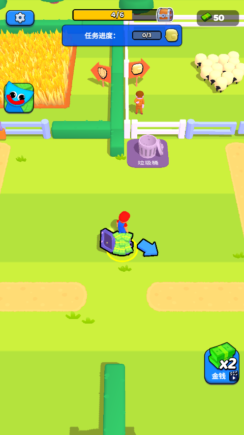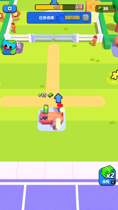 1、在本站下载安装,打开进入游戏,拉动小人向箭头的方向跑,买个摊位。