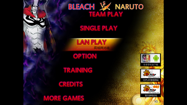 1、首先打开死神vs火影jojo版,进入后选择局域网对战;
