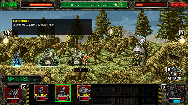 合金弹头攻击重装版是根据超人气游戏合金弹头而设计的一款炮塔防御类型版本。在该版本中保留了原有的细腻2D像素风格和世界观,并在其基础上融入了塔防玩法。玩家通过获取金币来购买对应的角色、坦克和飞机等,以此来抵御敌人的入侵。