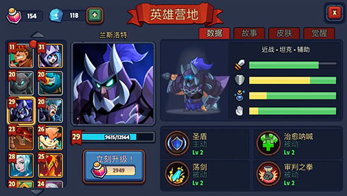 兰斯洛特,前期肉盾,神一般的存在,后期就是个奶妈。盾技能配合召唤生物和兵塔有奇效,释放技能时会丢失仇恨,亏他还是个坦克,输出极度乏力,还是把他当奶妈用吧。
