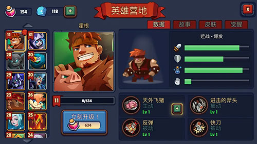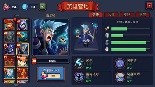 游戏中每个英雄都有独特技能和定位,比如全能型的菲适合前期输出,后期则更适合打辅助;兰斯洛特作为肉盾奶妈在前期表现神勇但后期略显乏力;伯尔顿作为法师控场能力一般但觉醒后表现不错。部分英雄如霍根、黑岩巨人等设计褒贬不一,技能效果有待优化。
