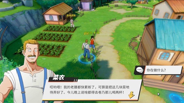 在“农业区”即风车村地图较为靠左边的位置,选择与“菜农”对话,对话结束后可获得“鲜嫩青菜X3”的奖励。
