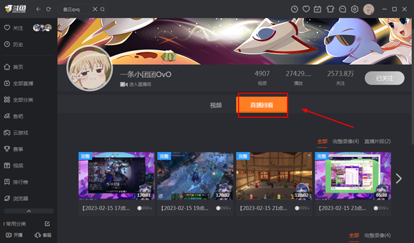 很多小伙伴在空闲时都喜欢打开斗鱼直播观看自己喜欢的主播进行娱乐放松,我们经常会时常因为各种原因导致无法观看完整直播内容,或是在直播的时间去看,这个时候我们就可以使用斗鱼直播中的查看回放功能,将错过的直播内容重新补齐。