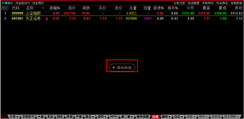 3、在自选股页面中间,有一个【+添加自选】,点击;